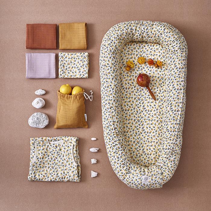Babynesten hjælper dit barn med at trives i livet uden for livmoderen. Det er behageligt og smalt, giver varme og følelsen af beskyttelse for barnet, mens den er omgivet af de bløde varme former i reden. Det kan bruges i både sengen, klapvognen eller hvor du vil placere dit barn. Det er ideelt at medbringe på ferie. Det er fleksibelt og let at bevæge dig rundt, så du kan få dit barn i nærheden hele tiden.