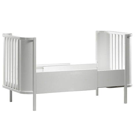 75x115 cm med hævet bund og begge sider af -Når du har hævet bunden af ​​din Juno-seng, kan det let bruges som en seng Seng, helt simpelthen ved at fjerne en af ​​siderne af sengen og placere den mod forældrenes seng. Hvis du bare vil bruge Juno -sengen som en almindelig babyseng, kan du kun have begge sider på.