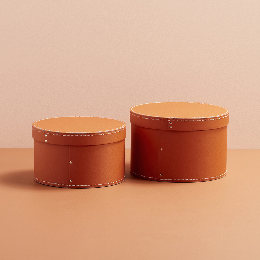 Et super flot sæt med to stilfulde opbevaringsbokse med tyk pap af høj kvalitet. Skufferne fås i to forskellige størrelser, så de let kan opbevares inde i hinanden eller stables.