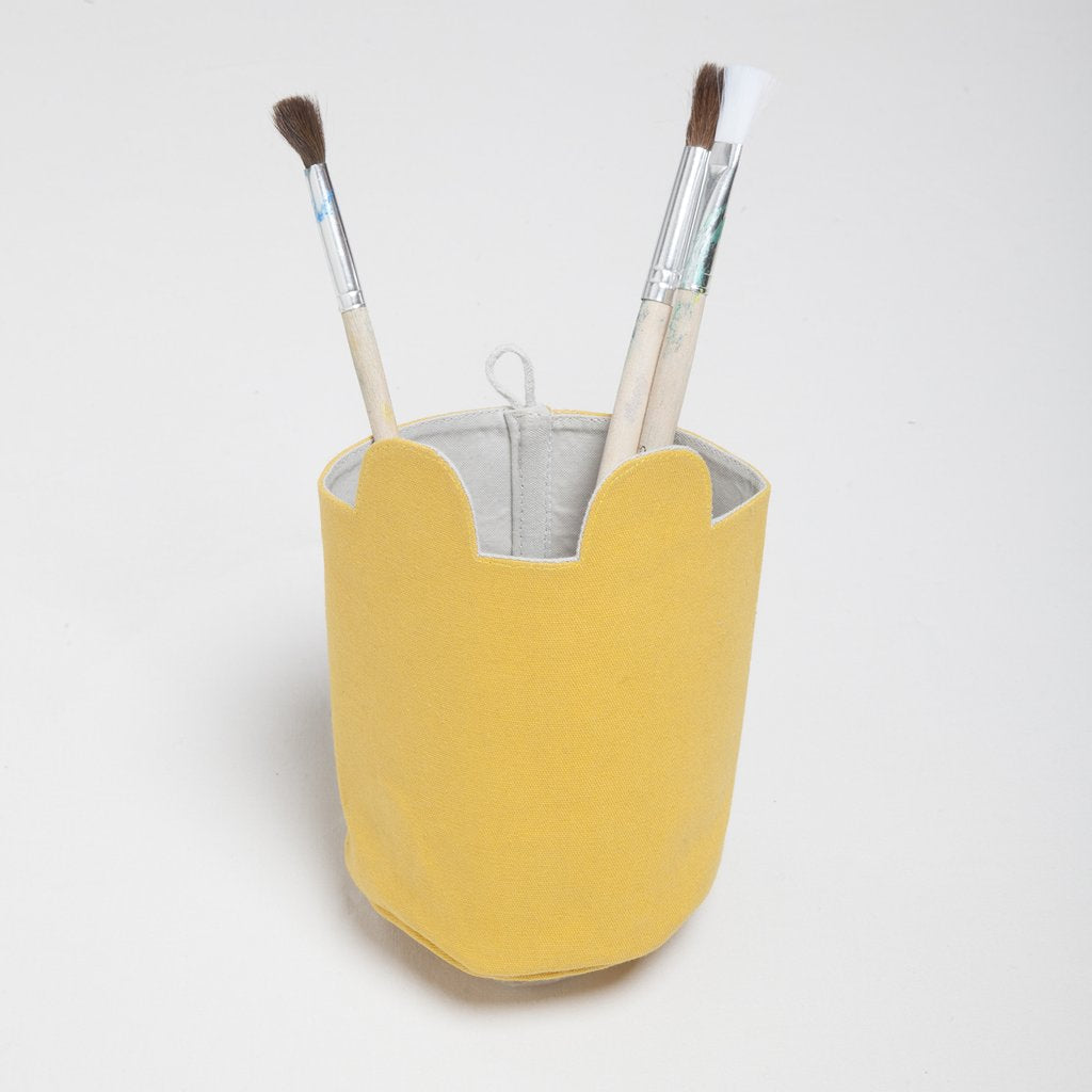 Hold ordre på skrivebordet med denne smarte opbevaringskurv fra Fabab i fin gul farve og med bjørneører.