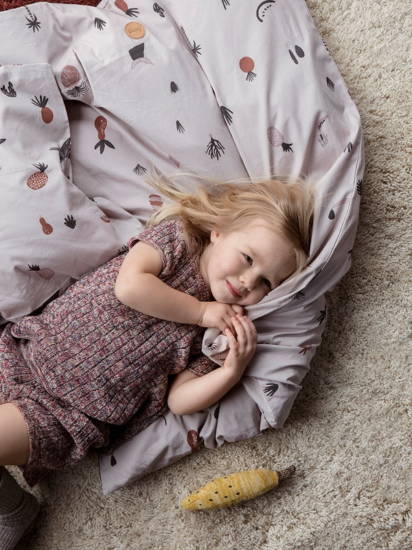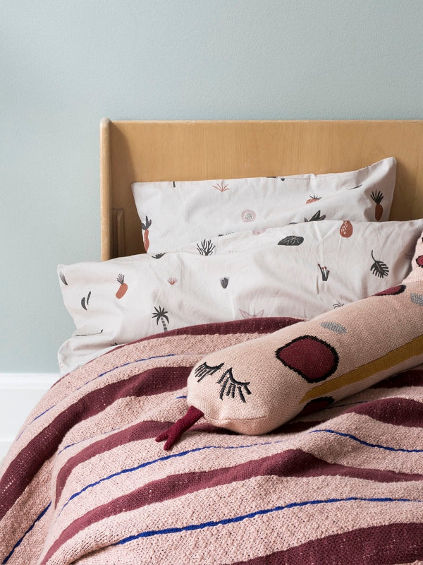 Disse lækre, organiske strøelse fra Ferm Living kan supplere børnenes værelse med det smukke design og motiver af rent paradis med forskellige eksotiske frugter, palmer og dyr.