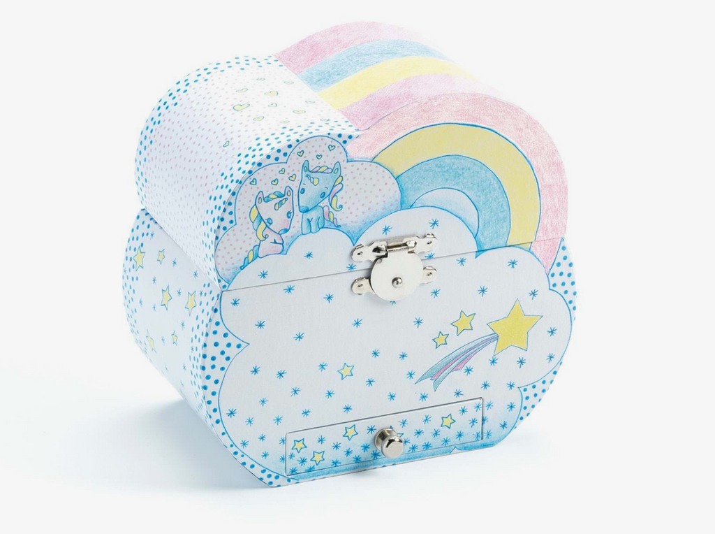 Denne dejlige lille smykkeskrin er fra Djeco. Smykkeskrinet har en dejlig ballerina, der danser rundt til musikken, når den trækkes op. I smykkerboksen er der også en dejlig lille kasse, hvor smykkerne kan opbevares. Det er en god gaveide til et barn fra 4 år.