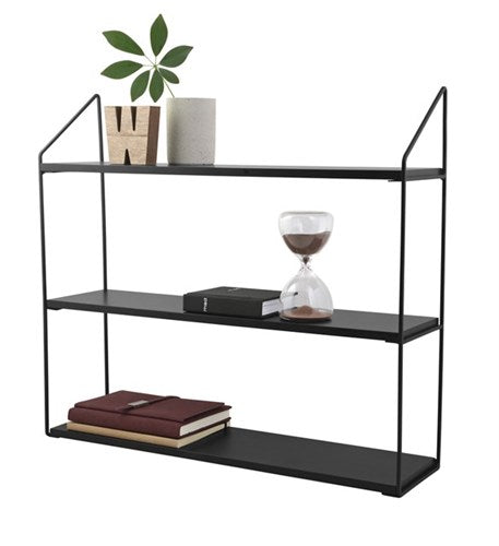 Sort boghylde med 3 hylder