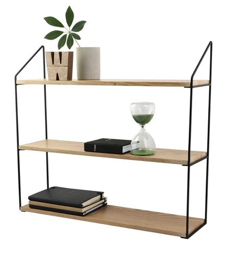 Sort/træ boghylde med 3 hylder