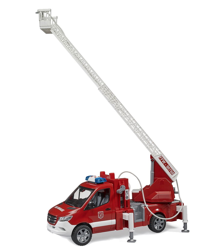 Denne smukke Red Mb Sprinter Fire Truck fra Bruder giver dig en detaljeret brandbil, der er klar til at håndtere forskellige opgaver. Brandbilen har en stige, der kan udvides og har døre, der kan åbnes. Derudover kan det fyldes med ægte vand og har en let og sund funktion.