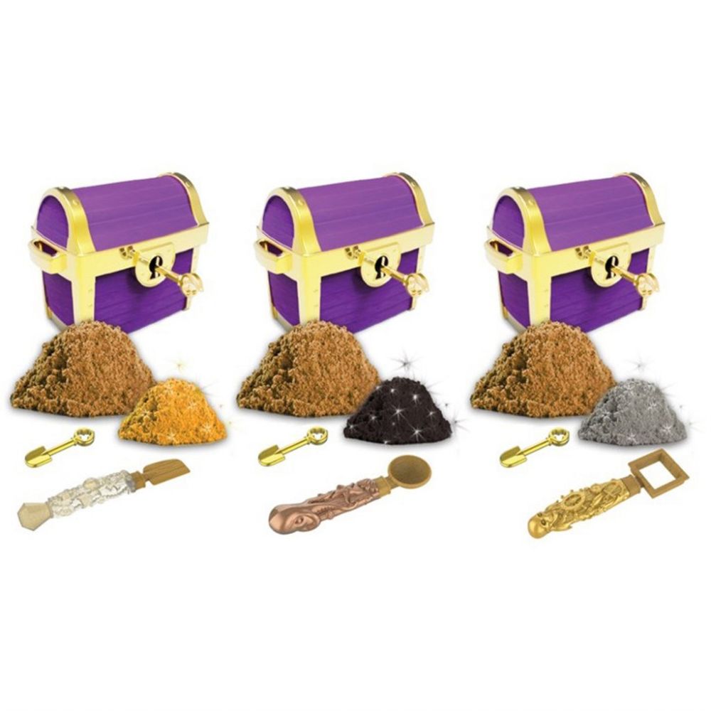 - Indhold: 170 gram kinetisk sand, kiste, nøgle, 3 mønter og hemmeligt værktøj