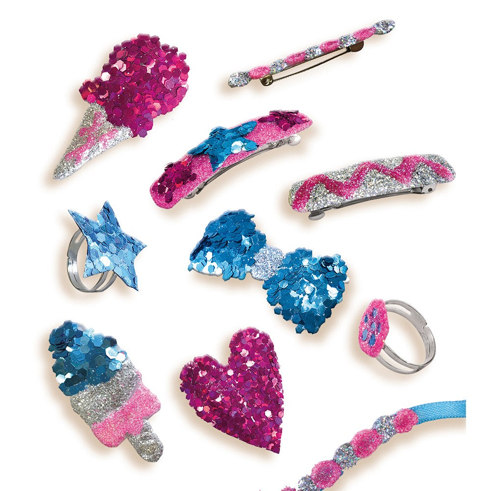 Nu kan den lille gå i krig og design og skabe deres helt eget smykker og tilbehør med dette glitter sæt fra SES Creative.