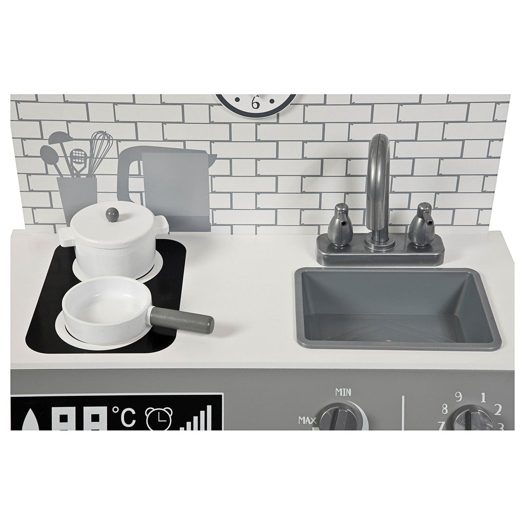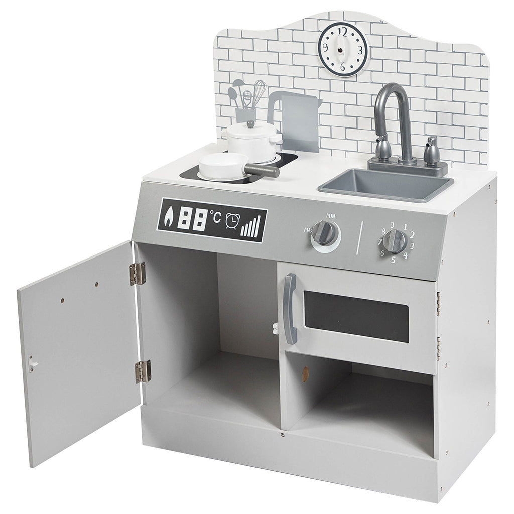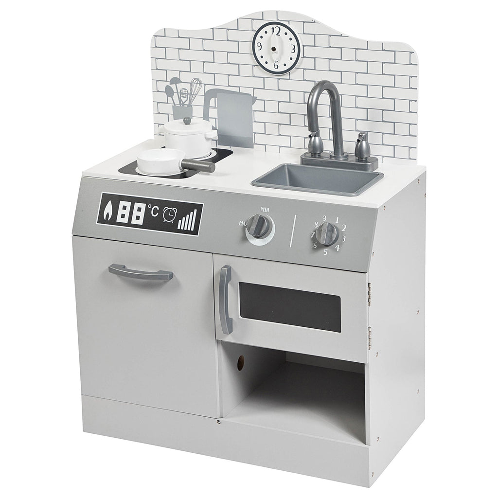 dejligt legekøkken i smukt design fra Stoy -mærket. Så kan den lille virkelig blive skør i legekøkkenet. Play Kitchen har en vask, komfur, skab og mikrobølgeovn. En gryde og en gryde er også inkluderet.