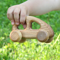 Lille håndlavet træbil. Det er lavet af organisk kasse og behandlet med organisk olie.