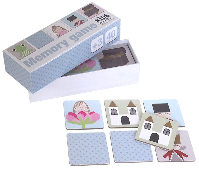 Superfint memo -spil med 40 fliser med velkendte illustrationer fra alle de bedste eventyr med alt fra prinsesser, helte, skurke og dyr.