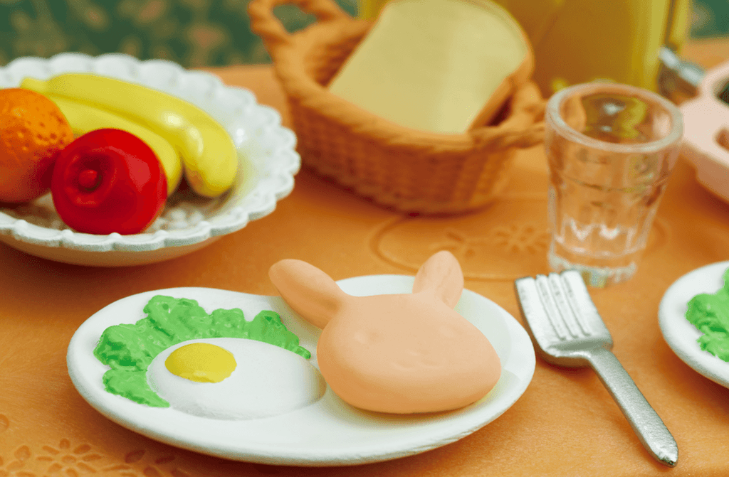Dejlig morgenmad sæt med toast, så de søde figurer kan have en god morgenmad.