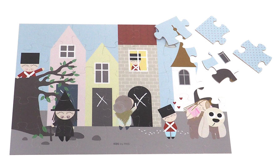 Super flot puslespil fra børn af Friis med 35 stykker i tungt pap. Puslespillet viser en super sød illustration med alt, hvad der hører til den velkendte historie: soldaten, prinsessen, heksen og endnu mere. Brug puslespillet til at udfordre og udvikle dit barns hånd-øje-motor.