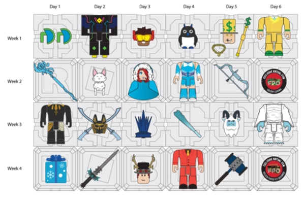 Nu kan barnet tælle ned til julaften med en festlig overraskelse hver dag fra denne seje Roblox julekalender. Det vil helt sikkert gøre nedtællingen endnu sjovere! Med de forskellige dele, der kommer, kan barnet opbygge deres helt egne unikke Roblox -tegn.