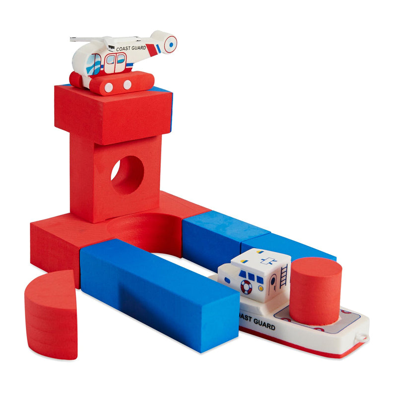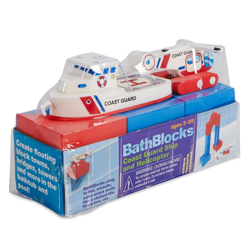 Denne sjove skumblok fra badeblokke er lavet af skum, der kan flyde. Blokkene sidder fast med hinanden, når de kommer i kontakt med vand. Båd og helikopter er inkluderet i det sæt, som den lille kan bygge port til i badet.