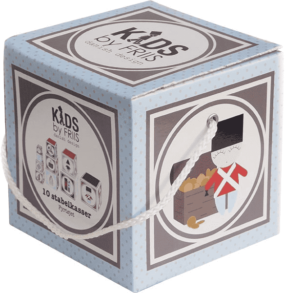 10 gode stable kasser fra børn af Friis med Fyrtøjet -eventyret, der kommer i den fineste gaveæske. Fortæl den velkendte H.C. Andersen Classic, bruger motiverne på kasserne, mens de stabler kasserne og tæller til 10.