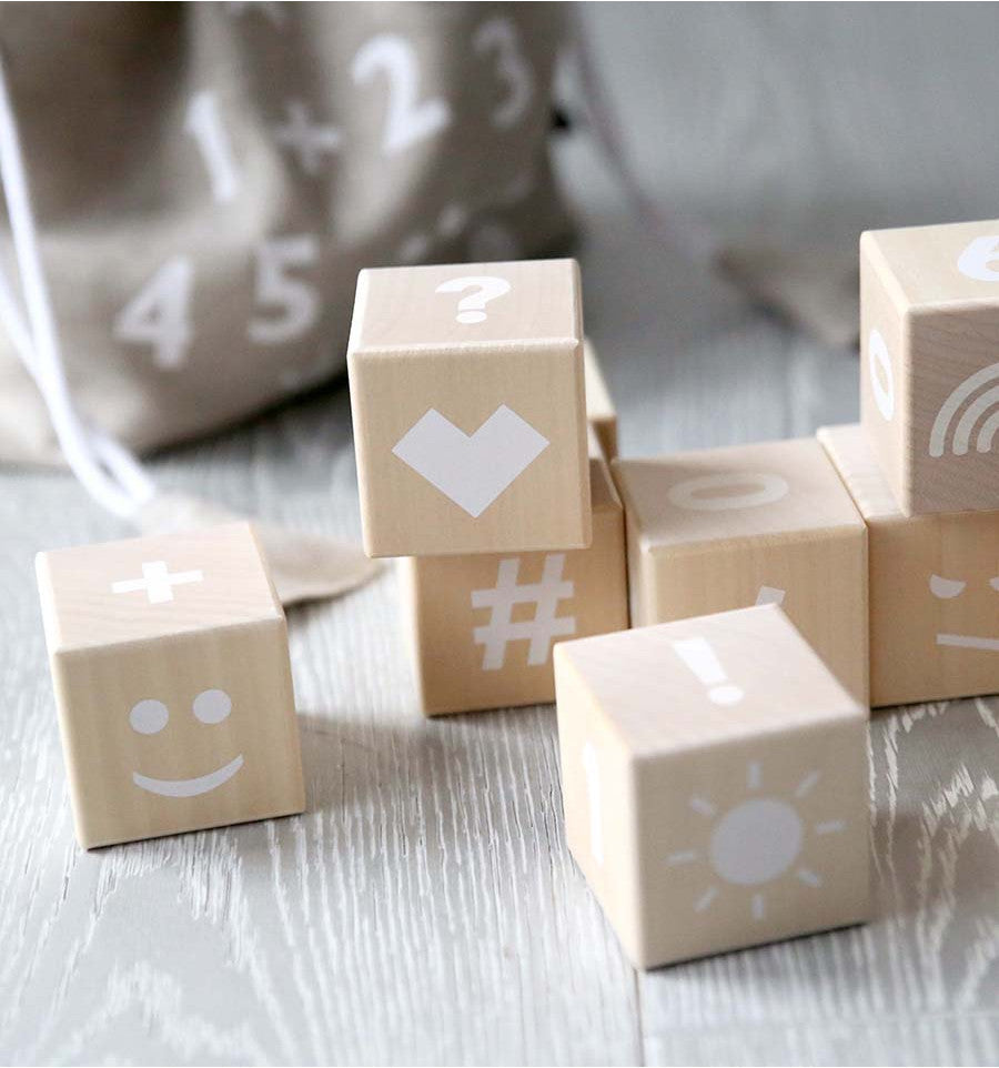 fine træblokke fra ooh noo, med tal i hvide blok bogstaver.