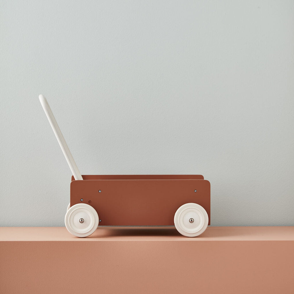 En superlegant træbil, der er den perfekte støtte til børn, der lige er ved at lære at gå, men også som en vogn til at køre rundt med legetøj, dukker og så videre. Håndtaget på vognen kan justeres i forhold til, om det skal være helt ligetil for mere støtte til barnets balance eller for ældre børn, der er mere stabile og derfor kan have håndtaget lidt lavere.