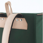 Børnenes taske er lavet af holdbar, vandbestandig nylon og læder. Hovedrummet er lukket med en retrore -reflekterende spænde, hvilket øger synligheden i mørke. Lommen på fronten er i læder og har en lynlås.