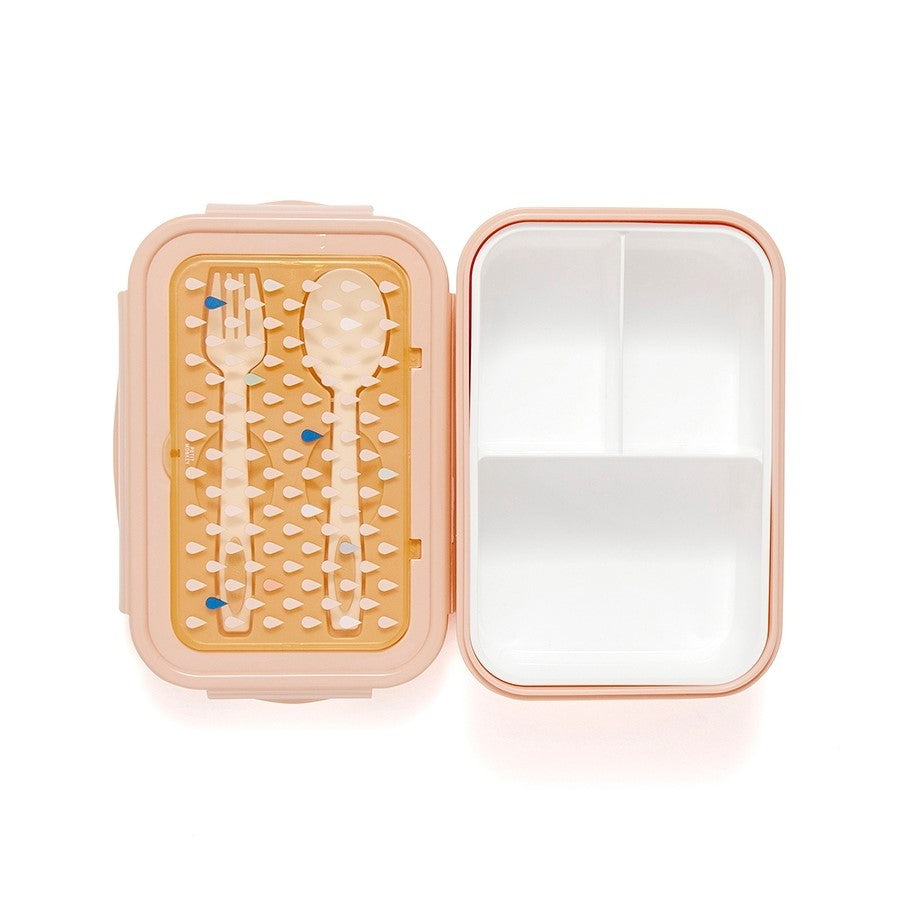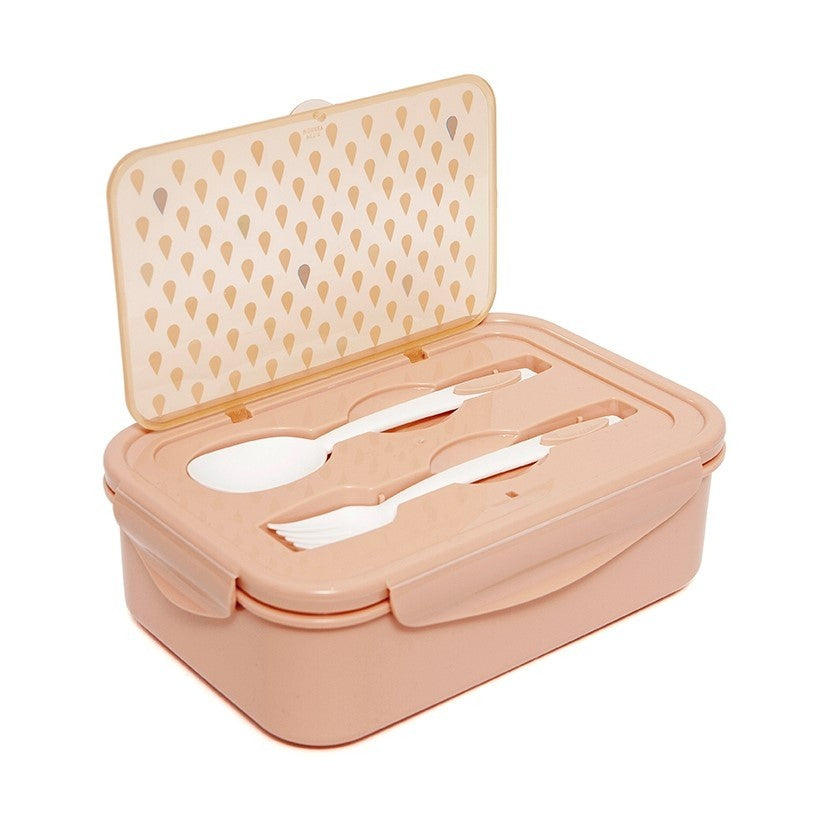 Smuk madkasse med bestik fra Petit Monkey, der er opdelt i rum, såsom Rye -brød snacks og frugt kan opbevares separat. En ske og en gaffel inkluderet.