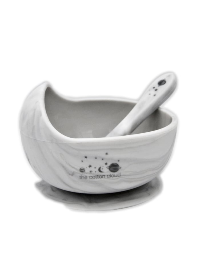 sæt består af en silikone skål og ske. Skålen har en sugekop, så den sidder på plads, når den lille er at spise.