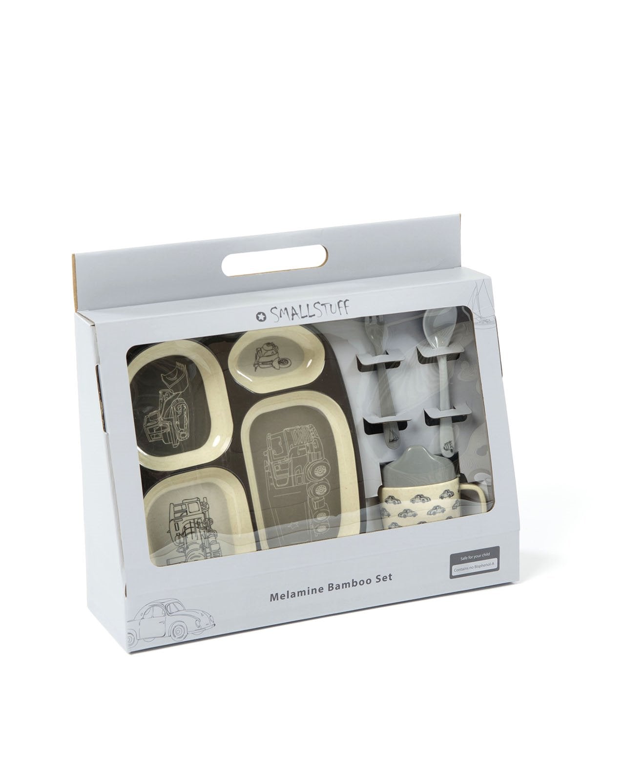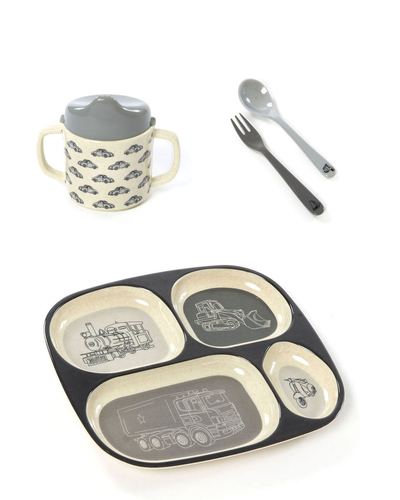 Det fineste madsæt fra Smallstuff med fint design af blomster i farven mørkegrå