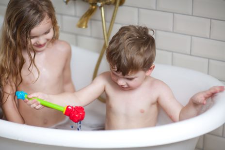 Sjovt badelegetøj til badet fra Tinti. Den magiske stav kan få badevandet til at ændre farve, når du vinker det under vand. Du lægger simpelthen en farvetablet i den, og vandet skifter farve, når du svinger den gennem vandet.