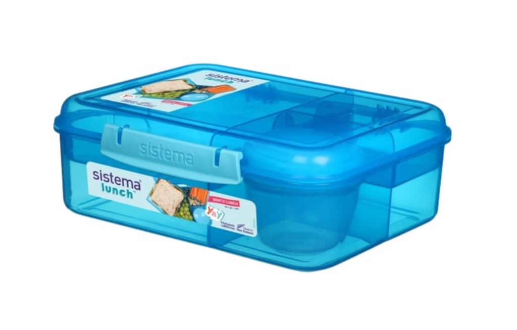Delt madkasse med kop - blå