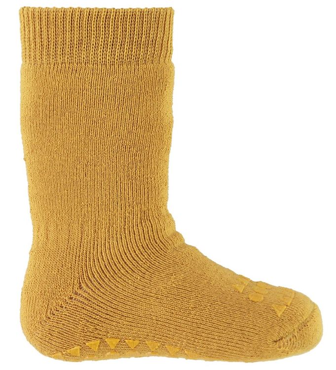 Sennep farvede skridsikre sokker, str. 17-19 (6-12 måneder)
