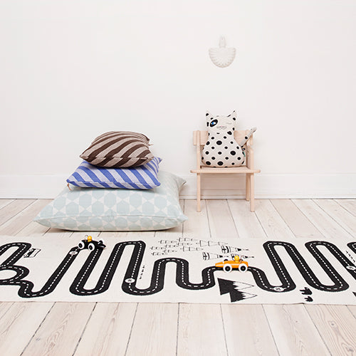 Sød eventyrmåtte fra Oyoy med fine illustrationer og Long Road, så den lille kan bruge den som en bilspor eller til hestene eller lignende. Tæppet er perfekt til børnenes værelse.
