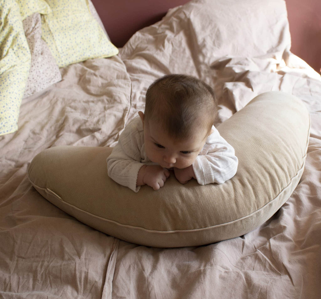 Den fine lysebrune farve er ikke noget problem at passe ind. Farven vil være i god kontrast til andre farver, da det ikke er en særlig "vild" farve, men den er meget neutral. Når puden ikke længere skal bruges som en ammende pude, kan puden let bruges som en pude til sengen takket være den stilfulde farve og den bløde kvalitet.