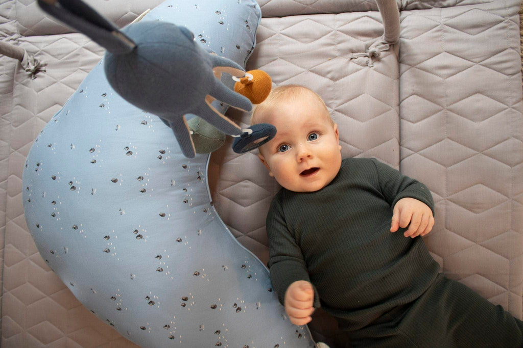 En ammende pude kan bruges til andet end "bare" til amning. Puden er let at komme i seng, og derfor har den lille fået en ny pude at sove med. Puden er designet med et fint tryk inspireret af havet. Her finder du elementer som både, skibe, hvaler og bølger. Den lille vil elske at se på de forskellige symboler og være i stand til at genkende dem fra virkeligheden.