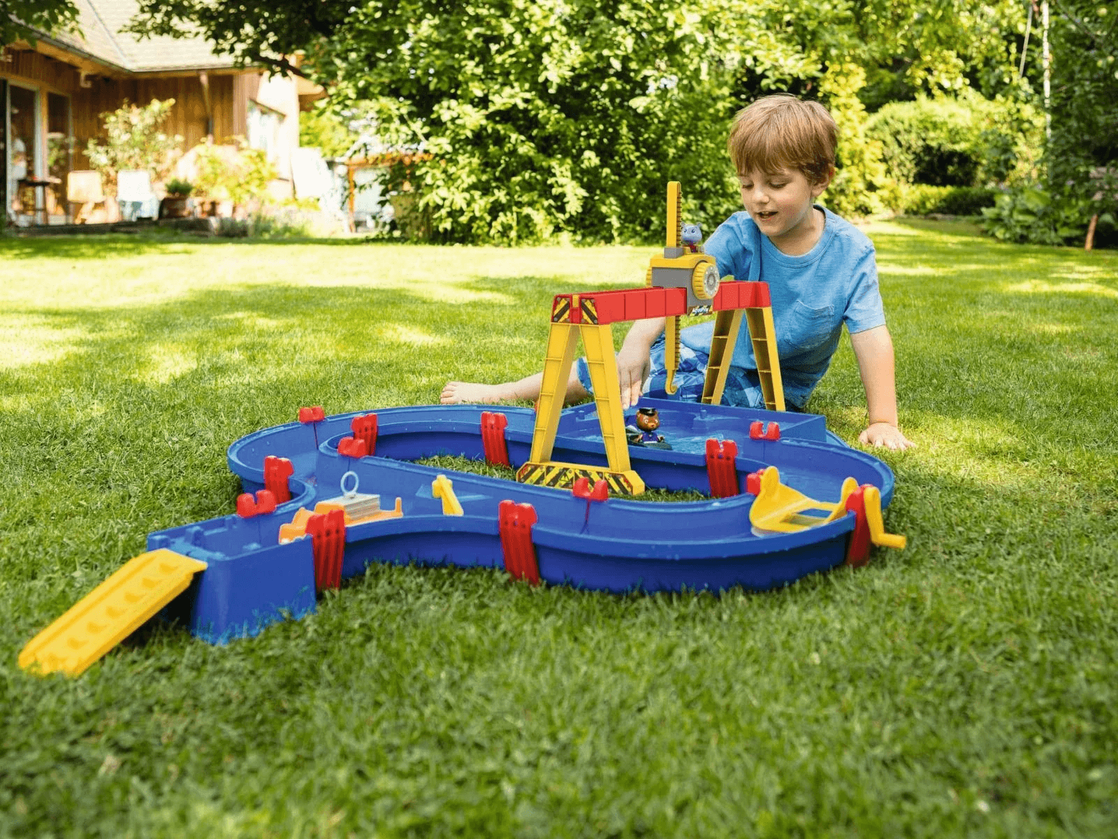 smukkeste aquaplay -vandspor med mange sjove funktioner. Barnet og venner vil elske at lege med sættet, mens de lærer om vandets bevægelser og vandløb.