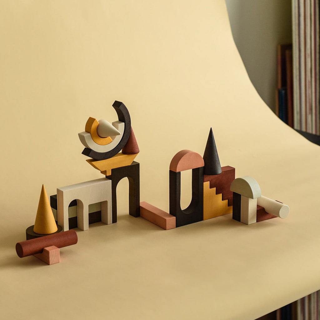 Disse arkitektoniske blokke er lavet af naturligt kalktræ, der har en blød og glat finish. De forskellige former giver barnet mulighed for at udtrykke sig på et kreativt niveau. Blokkene fører til ubegrænset glæde og leg, hvor kun fantasien sætter grænser.