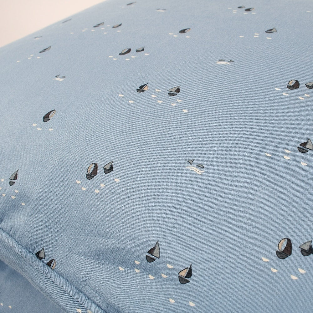 Trykket på dette strøelse er hånd -trukket og super flot. Med deres håndtrukne skibe, bølger og hvaler bidrager presset til at skabe en helhed og understøtter vores forhold til havet. Sengetøjet er inspireret af havet, der giver os en indre ro, og derfor kan vi blive afslappet af det.