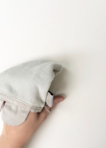 Stilfuld badhandske fra Fabab med katteører øverst. Bathinghandsken her gør det bare lidt pænere at blive skrubbet af mor eller far, og ikke mindst er det super sjovt at lege med.