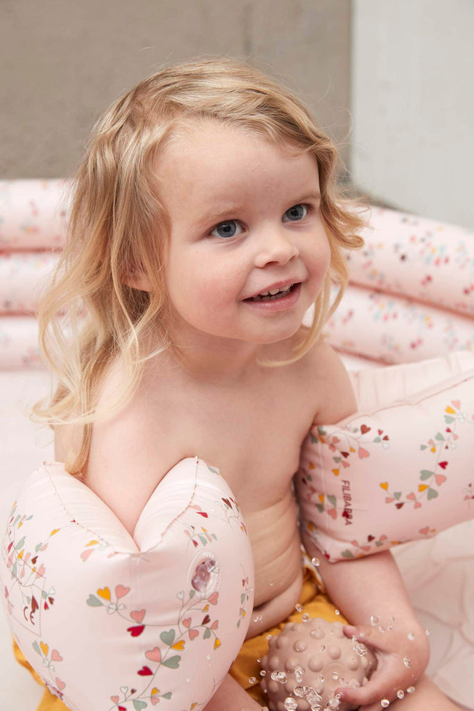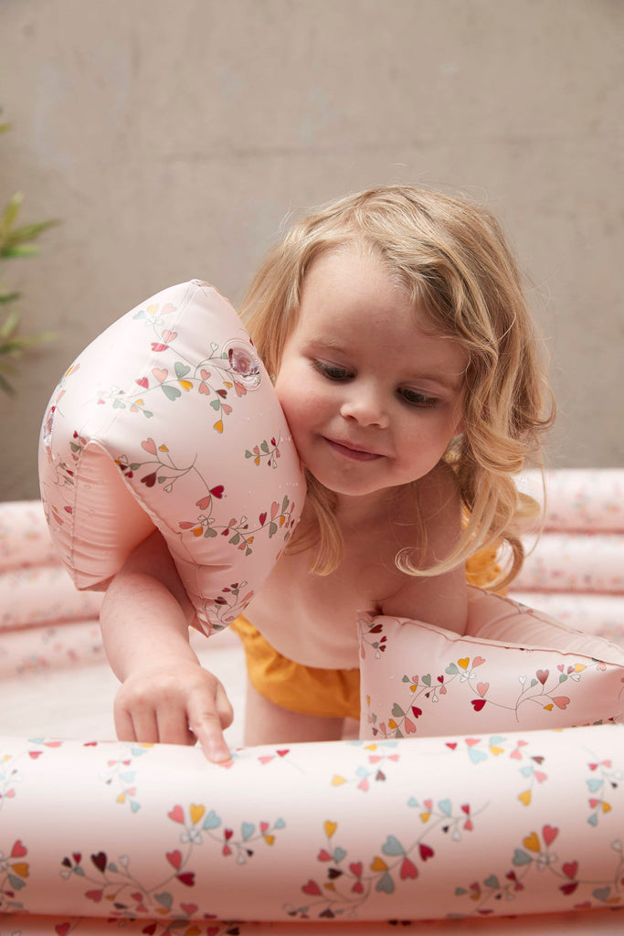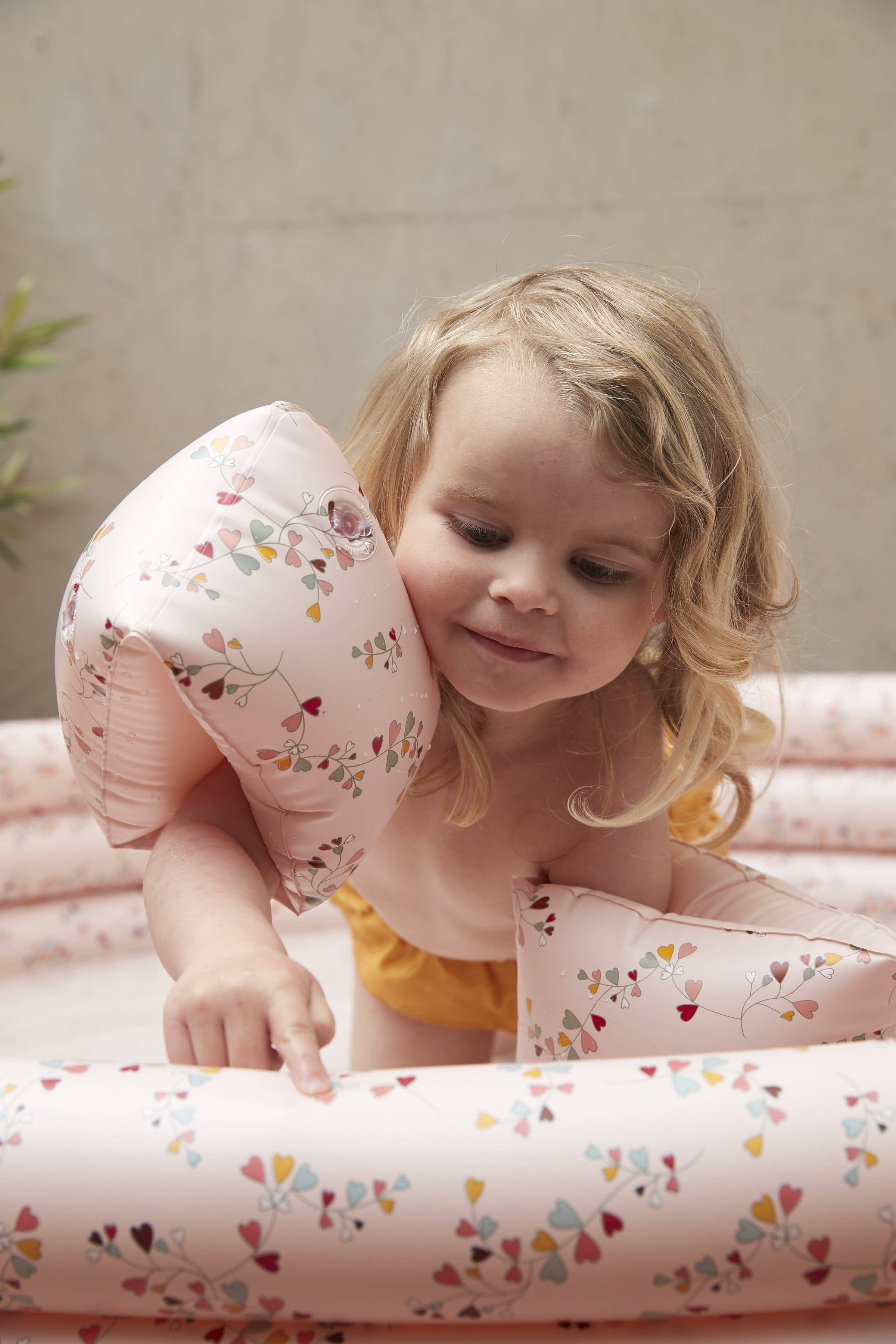 Disse badevinger er i en sød lyserød Farve, dekoreret med smukke planter med hjerteblade. Med den lille prinsesse bliver et par badevinger i denne farve bestemt et hit. Pink er en positiv farve, som de fleste piger kan lide, så der vil bestemt være en større chance for, at barnet ønsker at bære dem, hvis det er en farve, de kan lide.