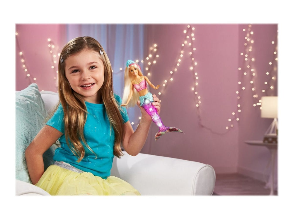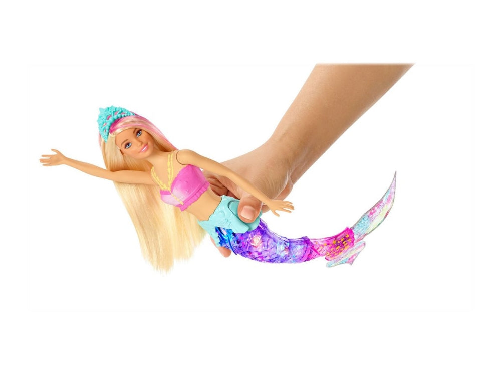 Med denne stilfulde dukke kan barnet nu få en dejlig badekammerat, når barnet bader - dette vil helt sikkert være et hit. Doll's Tail har en knap, der får dukkehalen til at bevæge sig og lyser op. Halen tændes automatisk, når det dyppes i vand.
