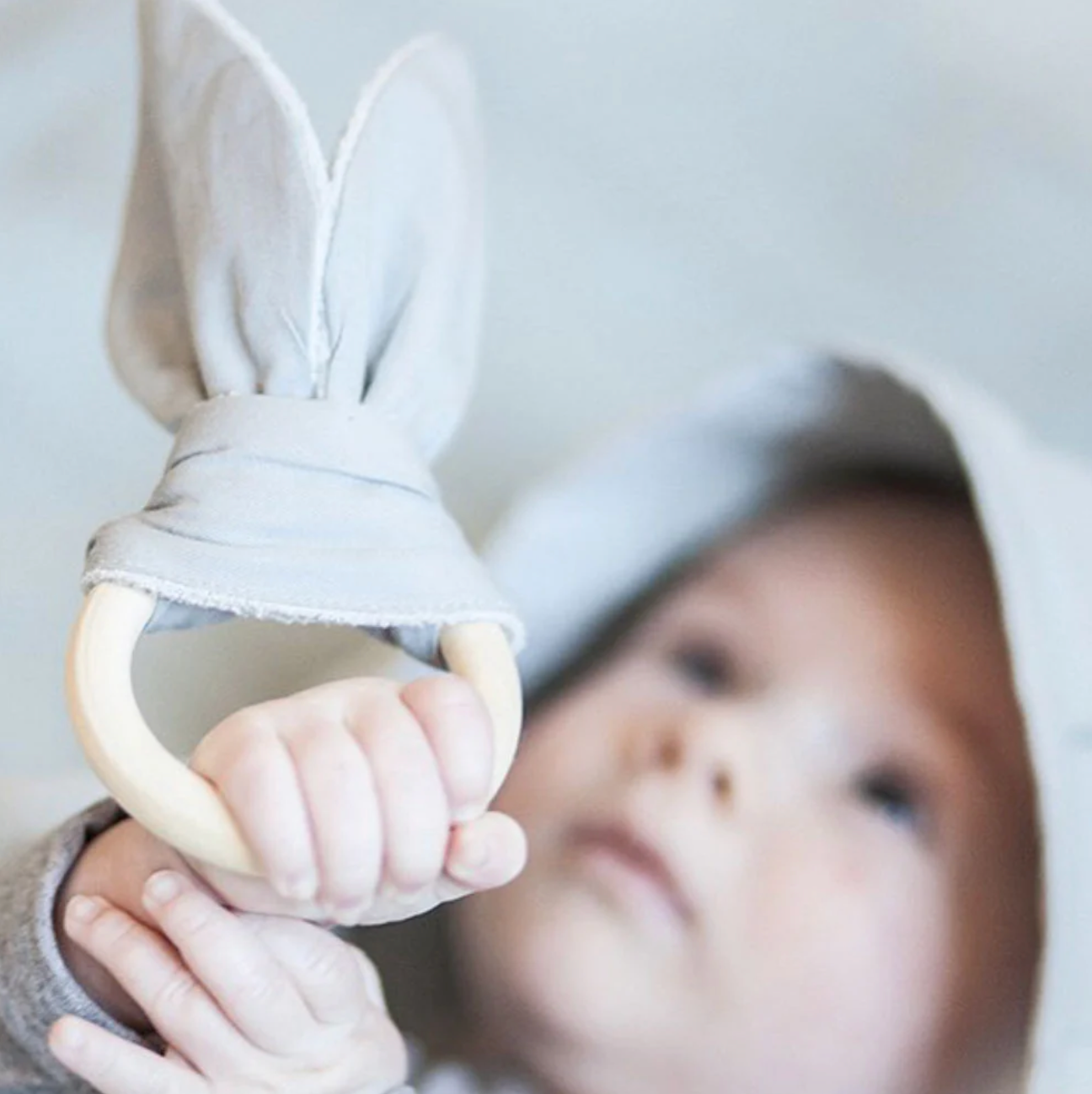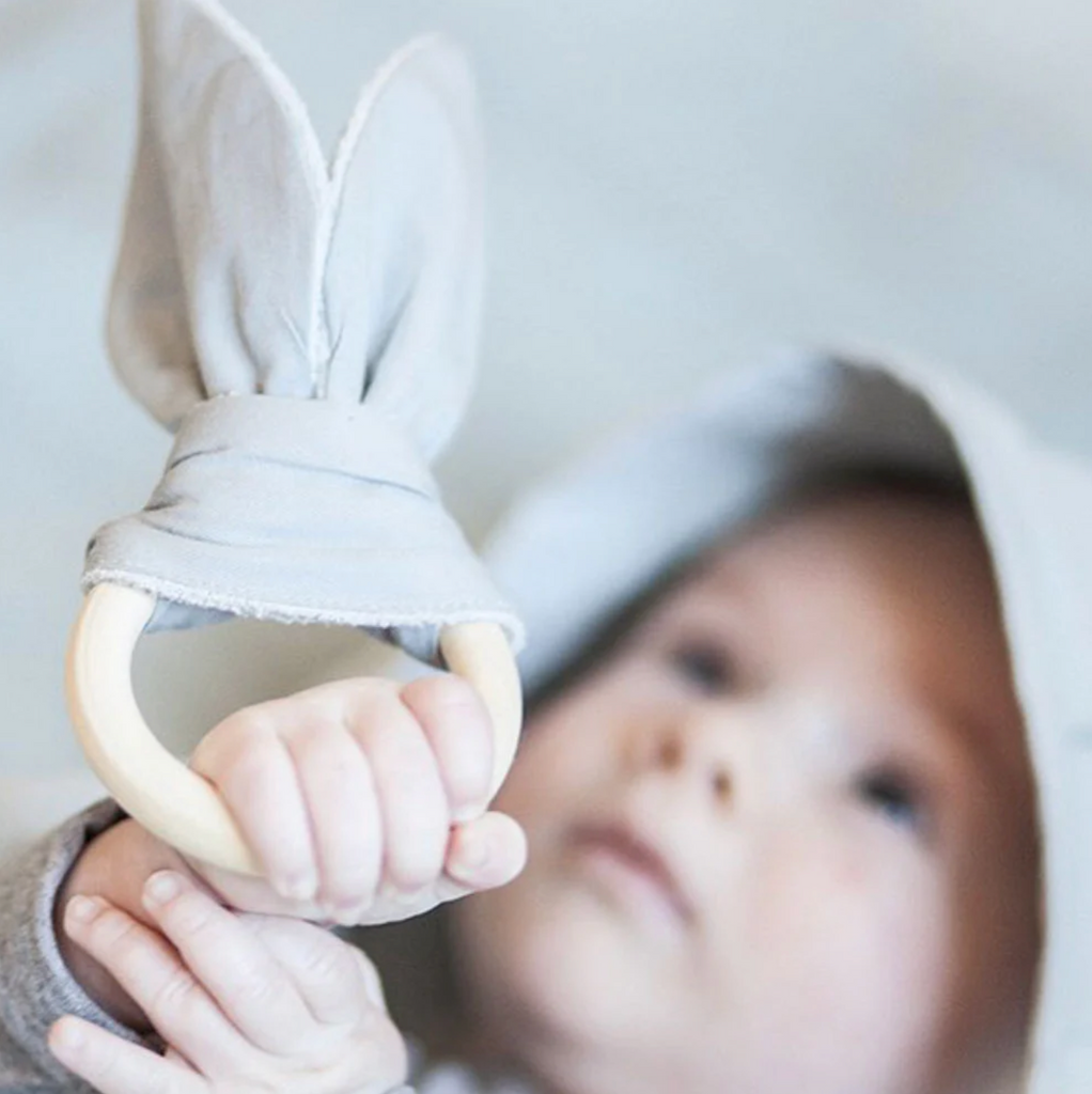 Denne fine bitring er fra Fabab. Bindingen er i blødt ahorntræ med nogle søde kaninører af organisk bomuld. Derudover vil tandlægen hjælpe med at stimulere barnets fine motoriske færdigheder og vil være en perfekt lettelse for ømme tandkød.