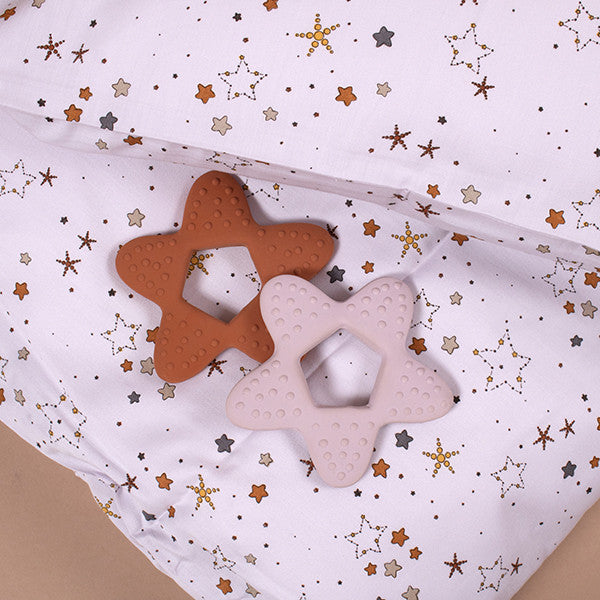 Stjernen er lavet med bløde kanter og knopper på overfladen af ​​stjernen for at hjælpe det ømme tyggegummi, som barnet kan have, og stimulere barnets taktile sind.