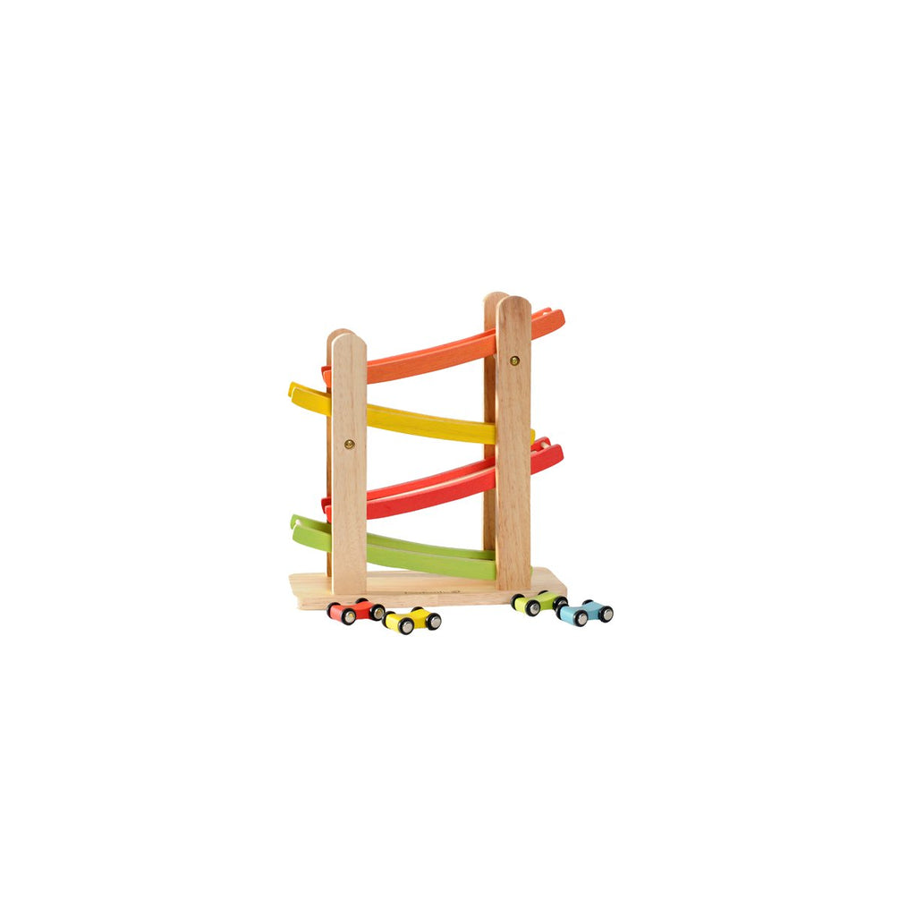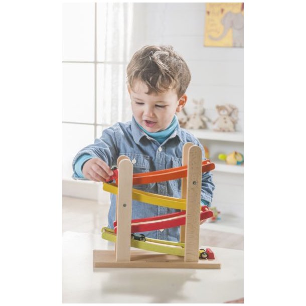 sjov, underholdende og økologisk bilspor, som de små kan nyde. Bilsporet leveres med 4 biler, der kan skynde sig ned ad det farverige spor i høj hastighed. Dette legetøj er sjovt underholdning og træner barnets koncentration.