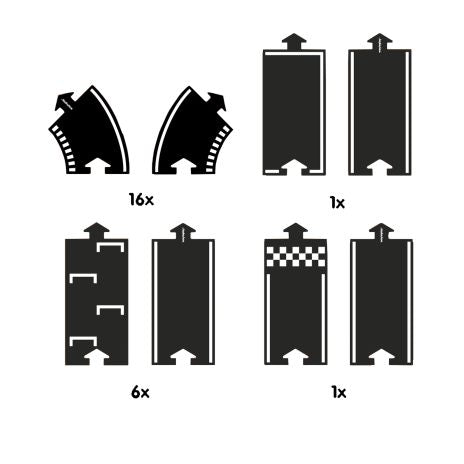 Byg dit eget Grand Prix-spor med denne 24-delte bilspor. Bilbanen er lavet af holdbar og glat rå tyggegummi, så den kan bruges både indendørs og udendørs. Den lille kan samle kurset, ligesom han vil. Sporet kan være 384 cm langt.