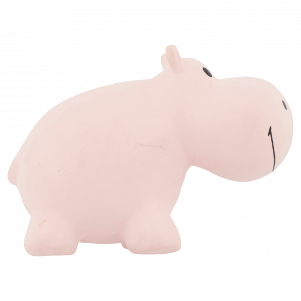 Denne søde lille flodhest fra tikiri er lavet af 100% naturgummi og håndmalet med naturlige og urtefarver.