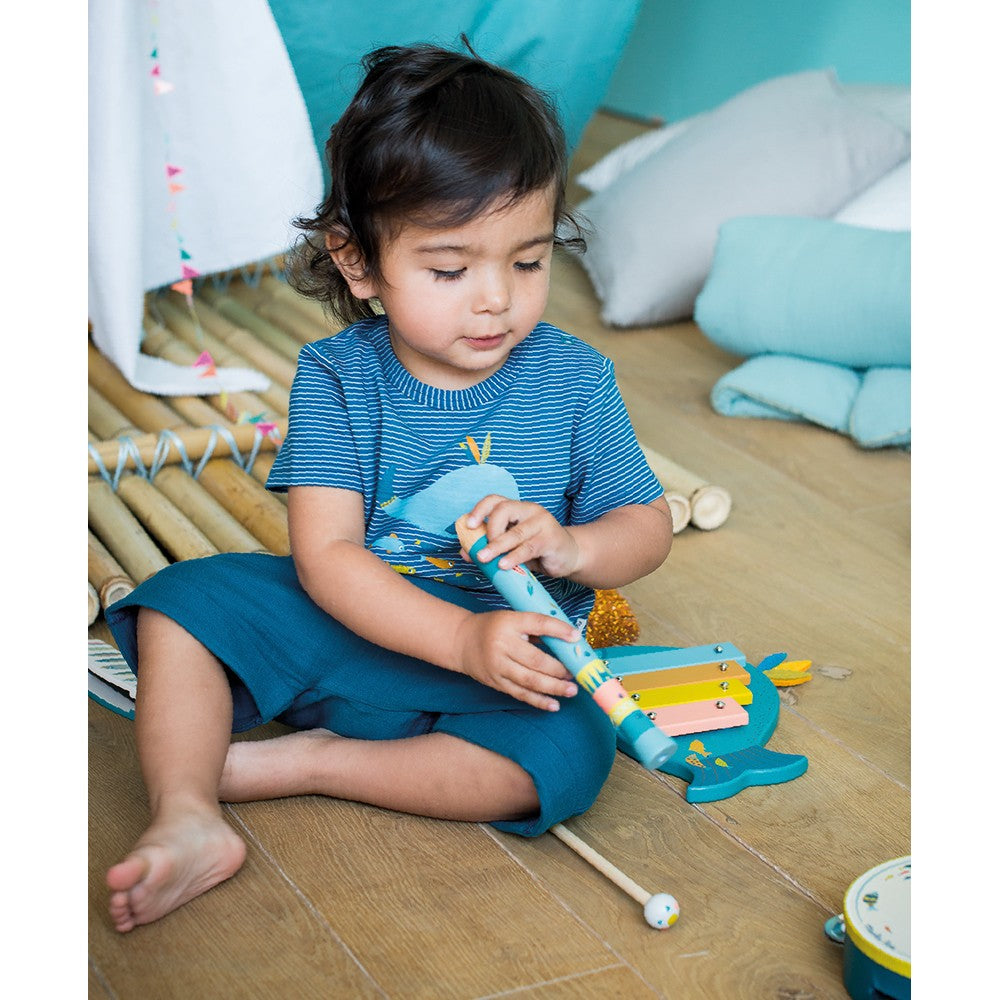 Denne fine optager fra Moulin Roty er absolut perfekt til dem, der ønsker at udvikle dit barns musikalske færdigheder og forståelse af rytme og lyd. Optageren kommer i de fineste blå nuancer med pæne små motiver.