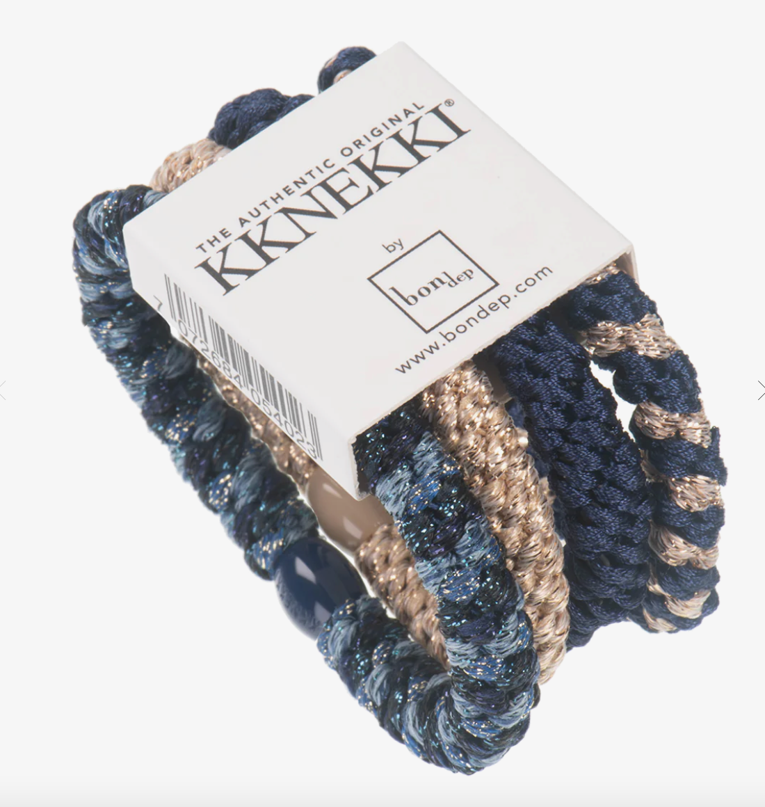 Bon Dep Kknekki Hår Elastikker - Beige/Mørkeblå/Glitter (4-pak)