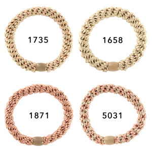 Smukke og farverige hårfjedre fra Kknekki. Hårene er skabt med en unik væveteknik, der gør den elastiske blide på håret og smertefrit at trække ud efter et sæt. Denne pakke leveres med 4 elastiske, og når de ikke sidder i håret, kan de bruges som stilfulde armbånd.