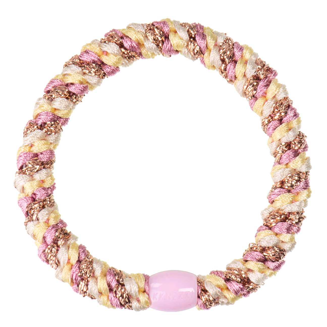 Stilfuldt og farverigt hårfjedre fra Kknekki. Hårene er skabt med en unik væveteknik, hvilket betyder, at elastikken er blid mod håret og smertefrit at trække ud efter sæt. Hårfjedrene fra Kknekki har et dejligt design, så de kan bruges som et armbånd, når de ikke er i håret.