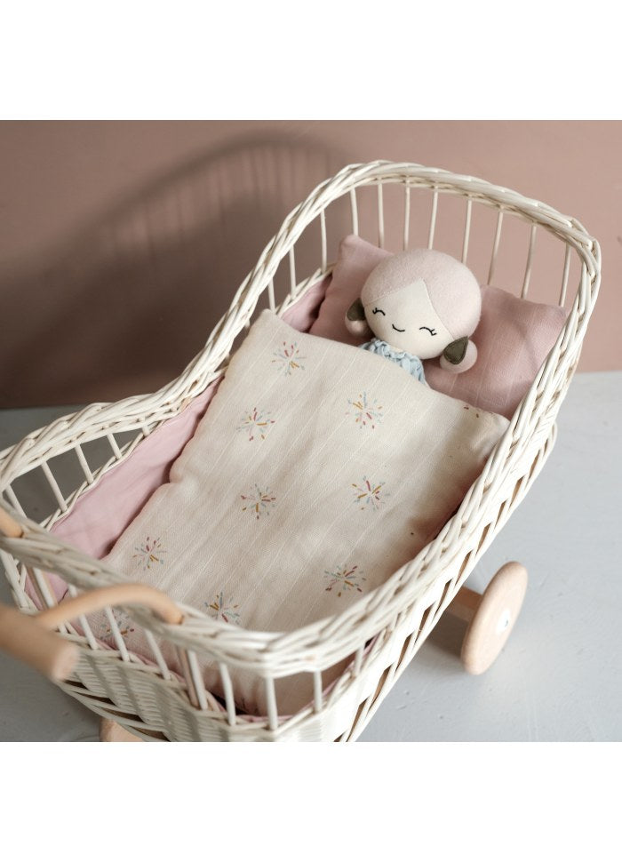 Dette dejlige sengetøj fra Fabab er lavet til de fine dukker, som åbenbart også har brug for en god nats søvn. Sengetøjet er lavet af 100% holdbar bomuld, og polyesterfyldningen indeni er selvfølgelig genanvendt!> Pude: 22x16 cm