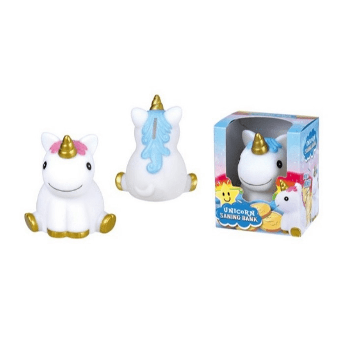 Cute Piggy Bank forklædt til en lille enhjørning. Perfekt til Lilles Pocket Money, så han/hun kan spare op til nøjagtigt, hvad der er øverst på ønskelisten.