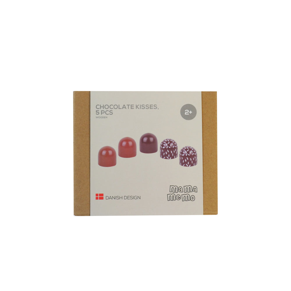 Sødt lille stykke træ spiller mad fra Mamamemo, der ligner en lille pakke flødeboller med mørk og lys chokolade og kokosnød. Derefter tilbringer de små timer i legekøkkenet og lad fantasien flyde og fungere som en købmand eller konditor.