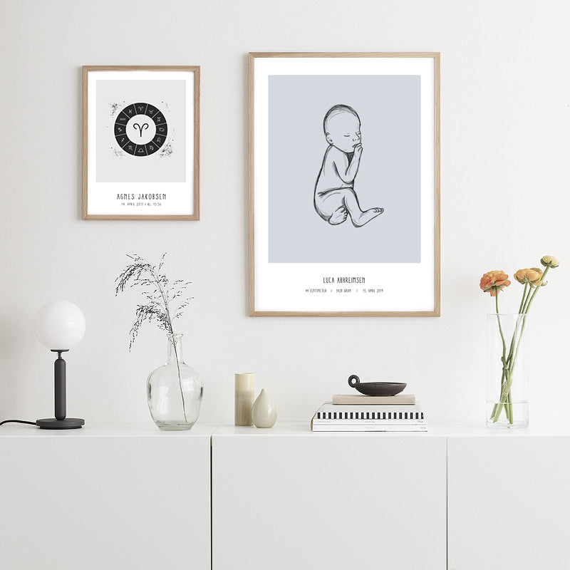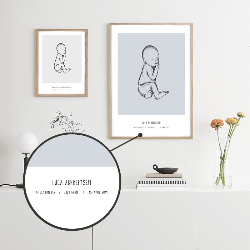 Plakaten er designet i et stilfuldt look med blå overflade, der passer ind på hvert børnehjem. De oplysninger, du angiver på din fødselsplakat , men vi anbefaler altid en A3 -ramme til plakaten. Hvis du vil have en af ​​vores populære plakatbøjler, som er perfekt til plakaten, kan du kun købe dette til 71 dkk og spare 40% på dette: https://littlehappy.dk/plakatophaeng-trae
